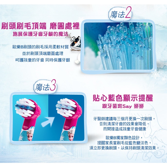 德國百靈Oral-B 電動牙刷兒童冰雪奇緣刷頭(2入)EB10-2 歐樂B 電動牙刷配件耗材 三個月更換刷頭