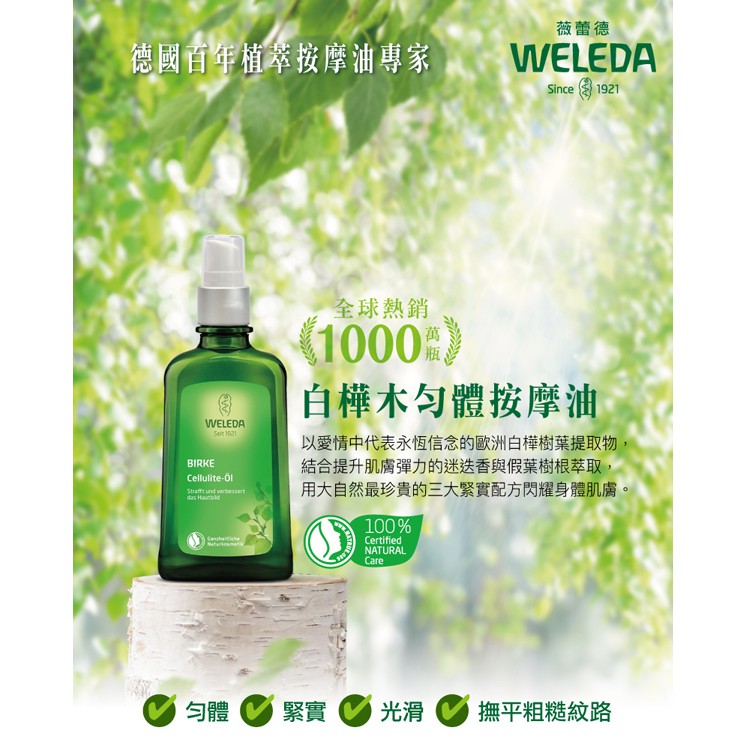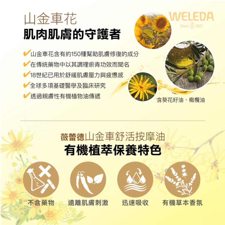 【WELEDA薇蕾德】白樺木勻體按摩油100ml +山金車舒活按摩油100ml-原廠公司貨