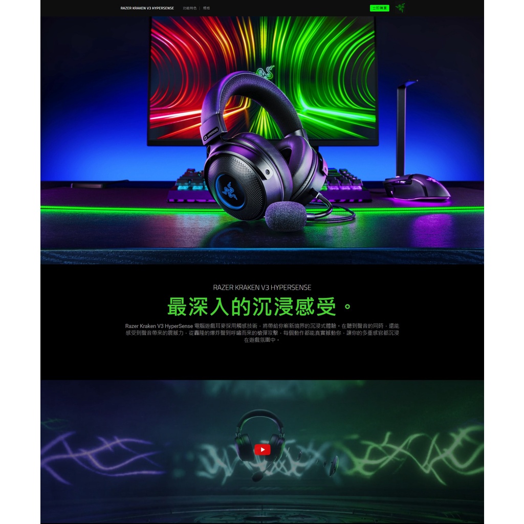 RaZER 雷蛇 Kraken V3 HyperSense 北海巨妖 有線 耳機 麥 克風 電競耳機