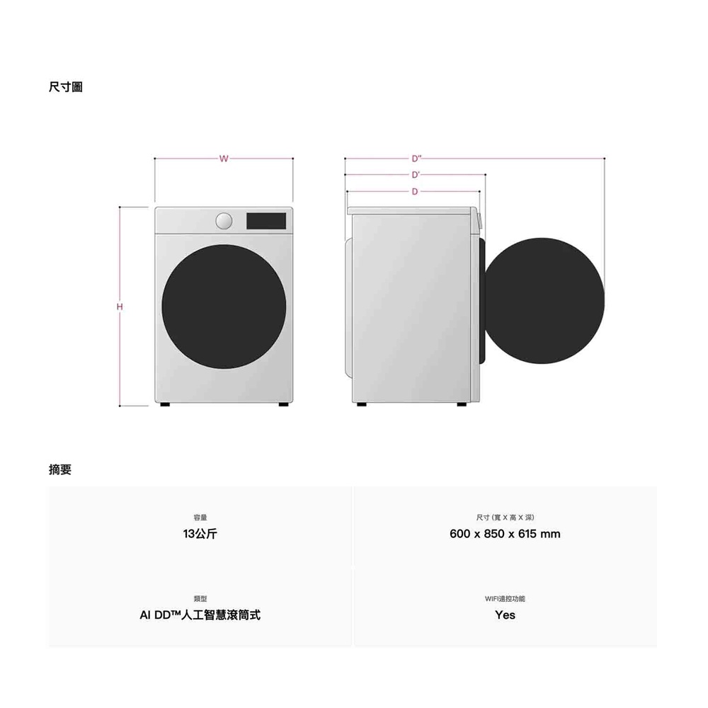 LG 樂金 WD-S13VDW 13KG | 金級省水 | 蒸氣 | 滾筒 | 洗衣機