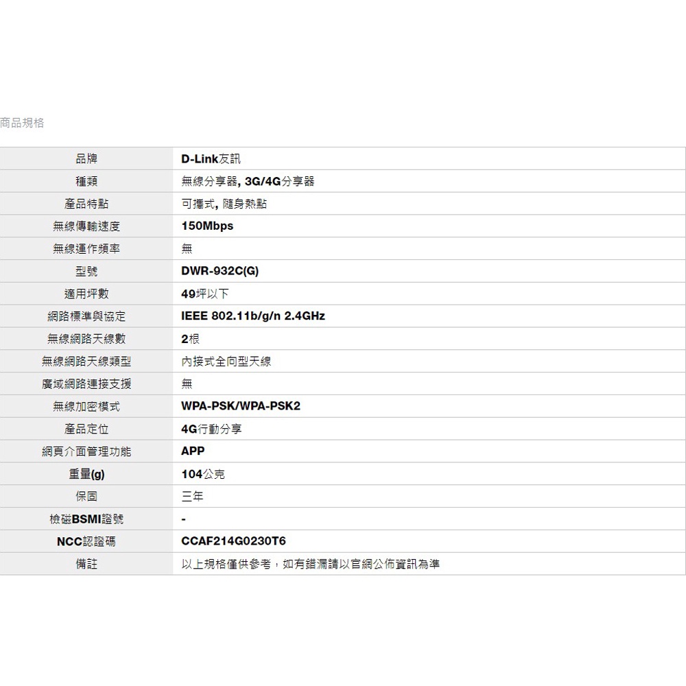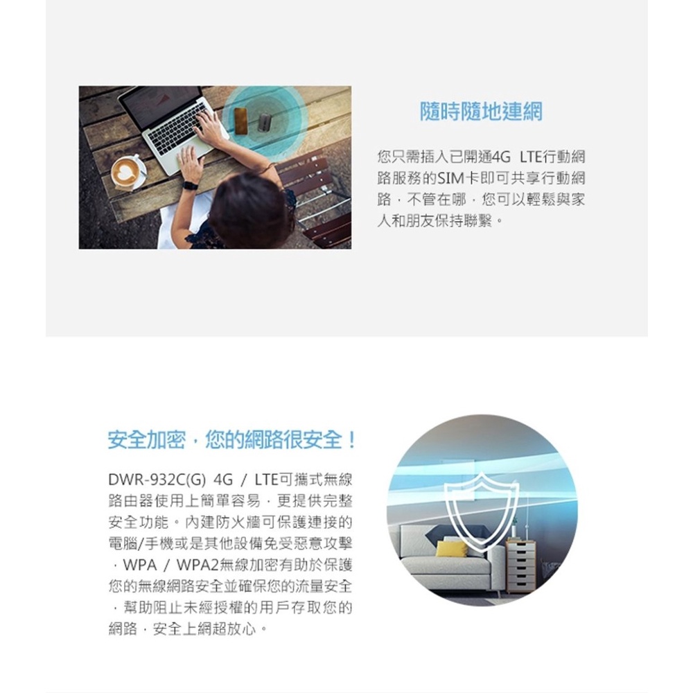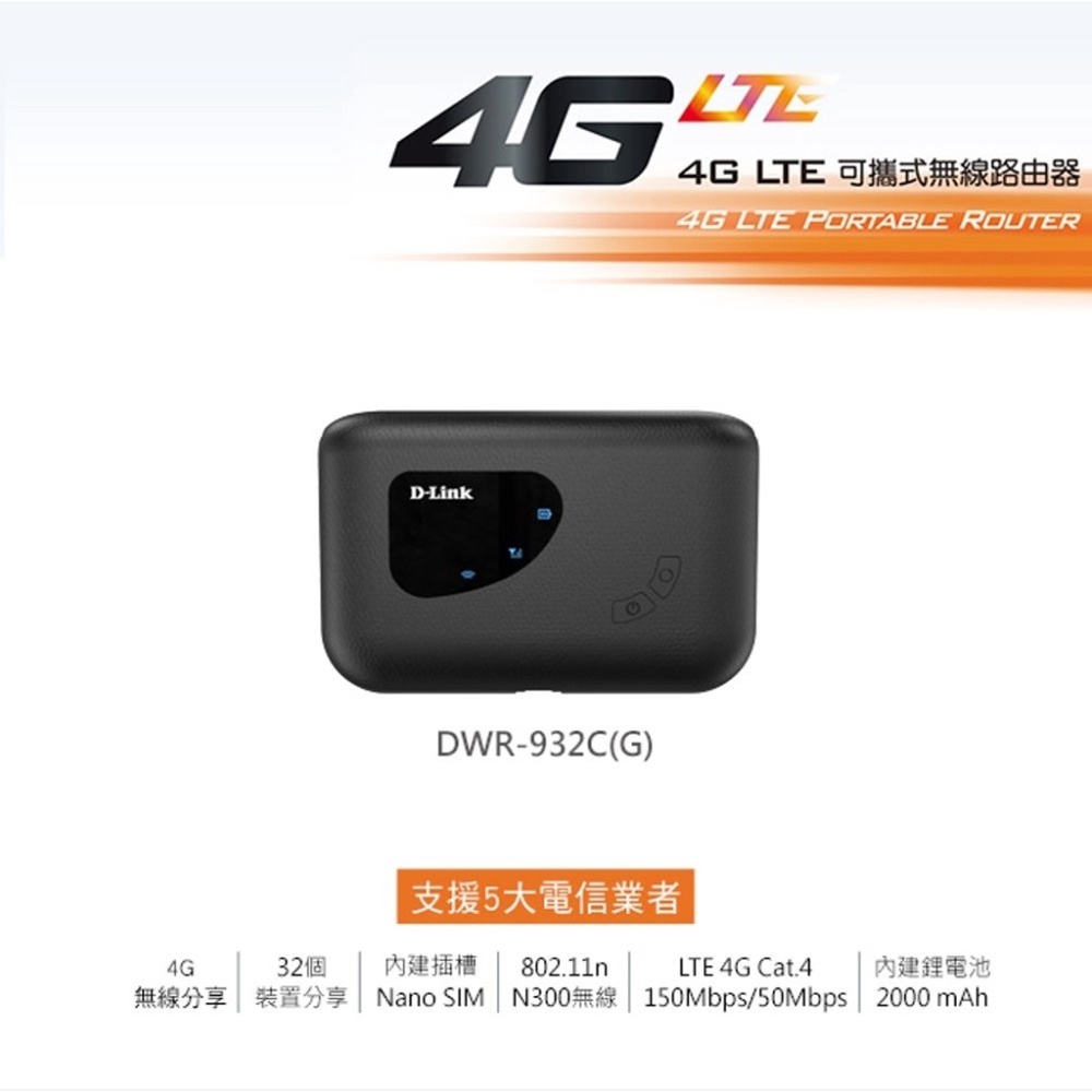 D-LINK 友訊 DWR-932C 4G LTE Cat.4 可攜式 隨身 無線路由器 WIFI 分享器 路由器
