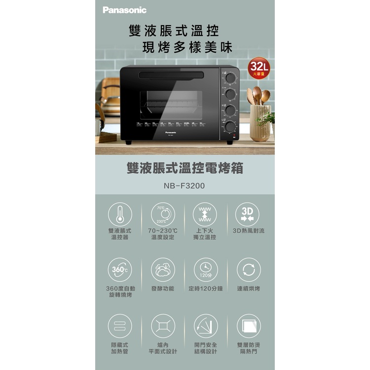 Panasonic 國際牌 NB-F3200 32L | 雙液脹式溫控 | 3D熱風對流 | 電烤箱