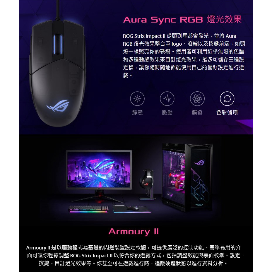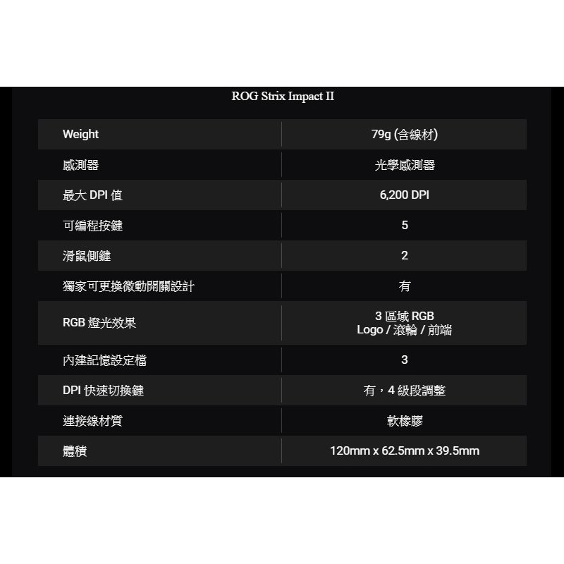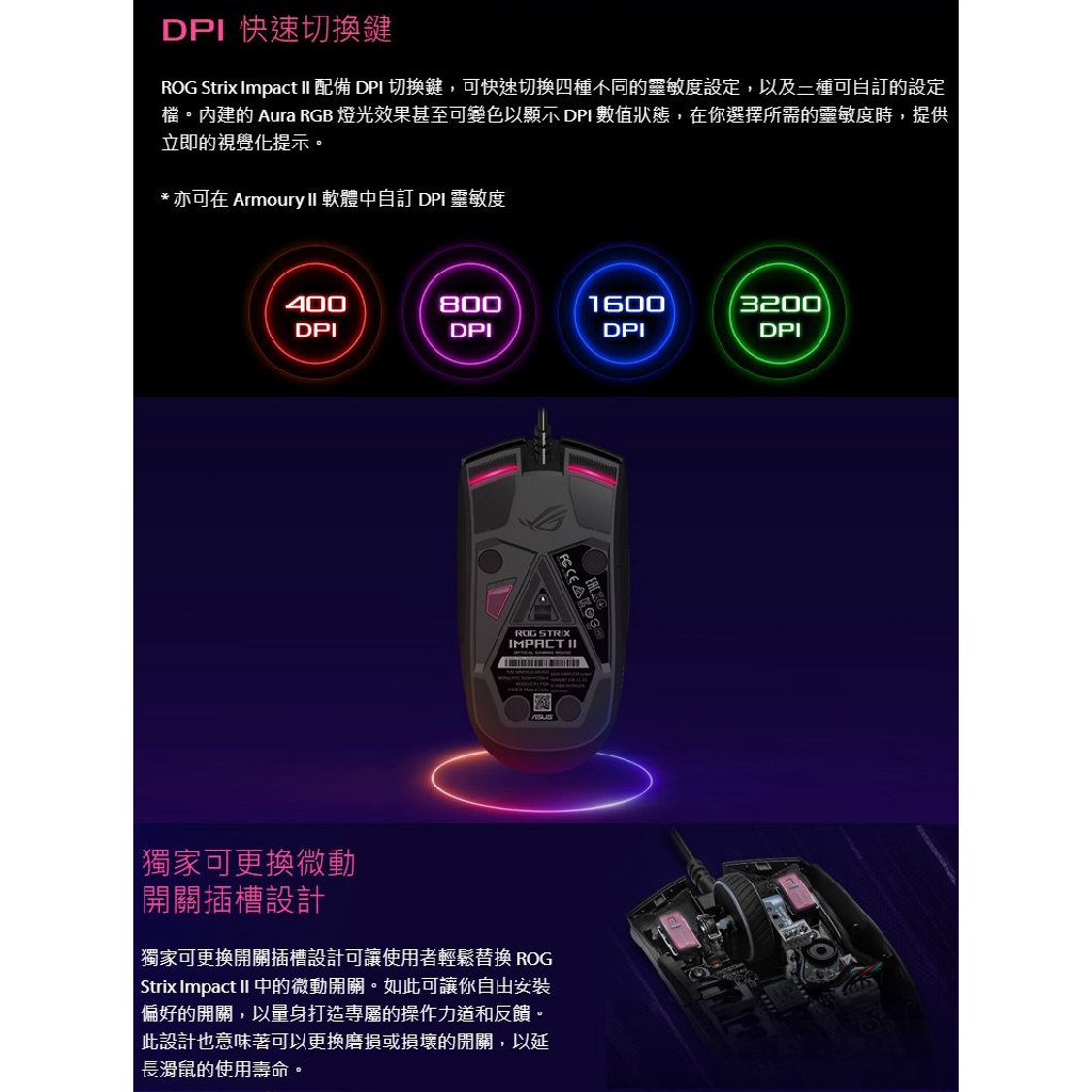 ASUS 華碩 ROG STRIX IMPACT II 電競滑鼠 遊戲 電競 有線 FPS 6200dpi 可更換微動