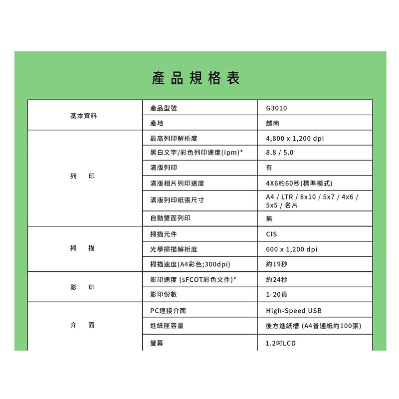 Canon 佳能 PIXMA G3010 大供墨複合機 印表機 後方進紙設計