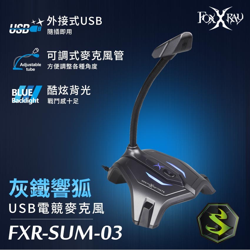 FOXXRAY FXR-SUM-03 電競 有線 麥克風 桌上型 USB 灰鐵響狐 黑色