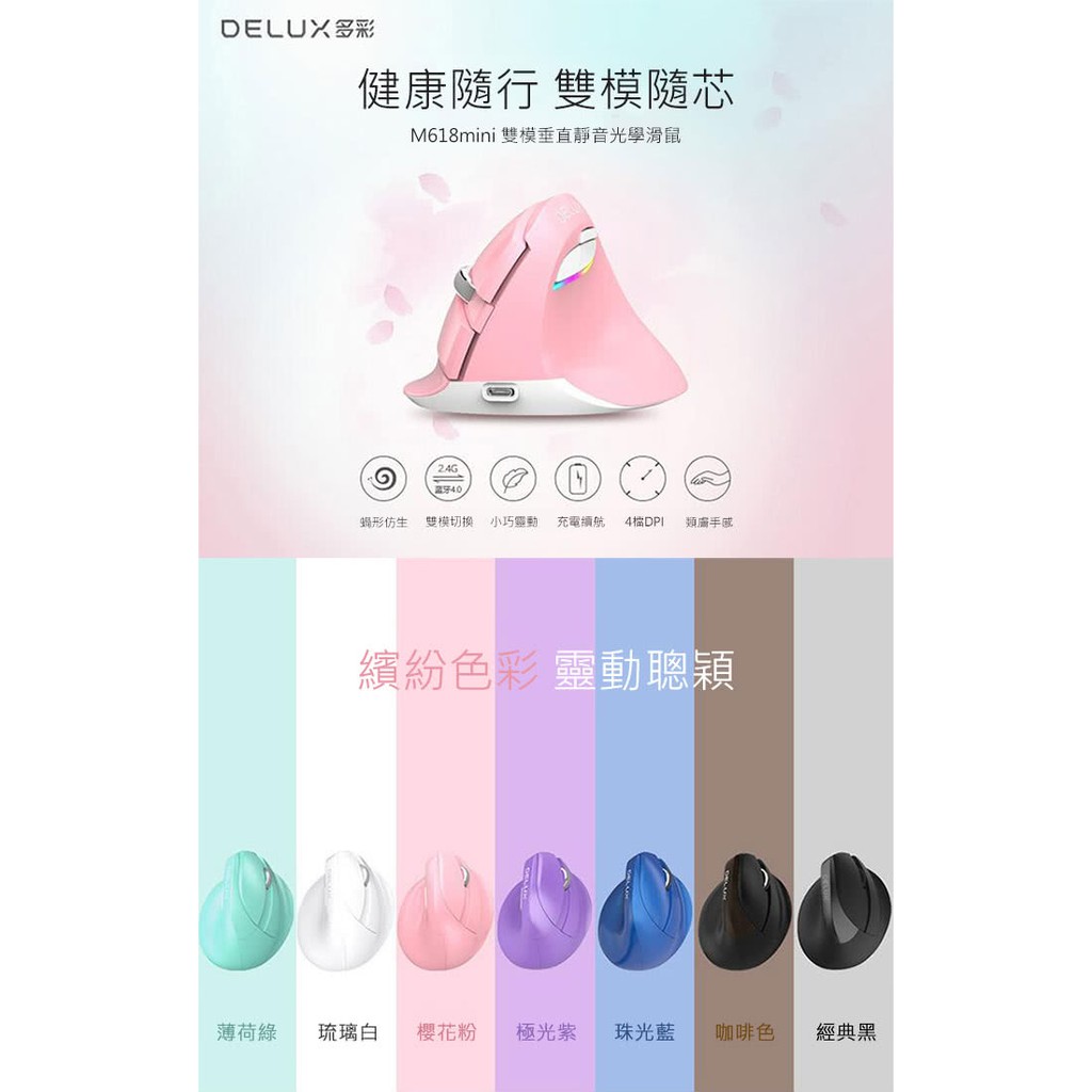 DeLUX M618mini 雙模 垂直靜音 光學滑鼠 白色
