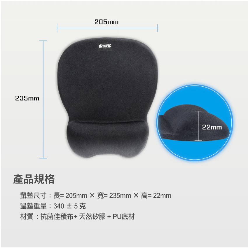 INTOPIC 廣鼎 PD-GL-022 抗菌 紓壓 護腕鼠墊
