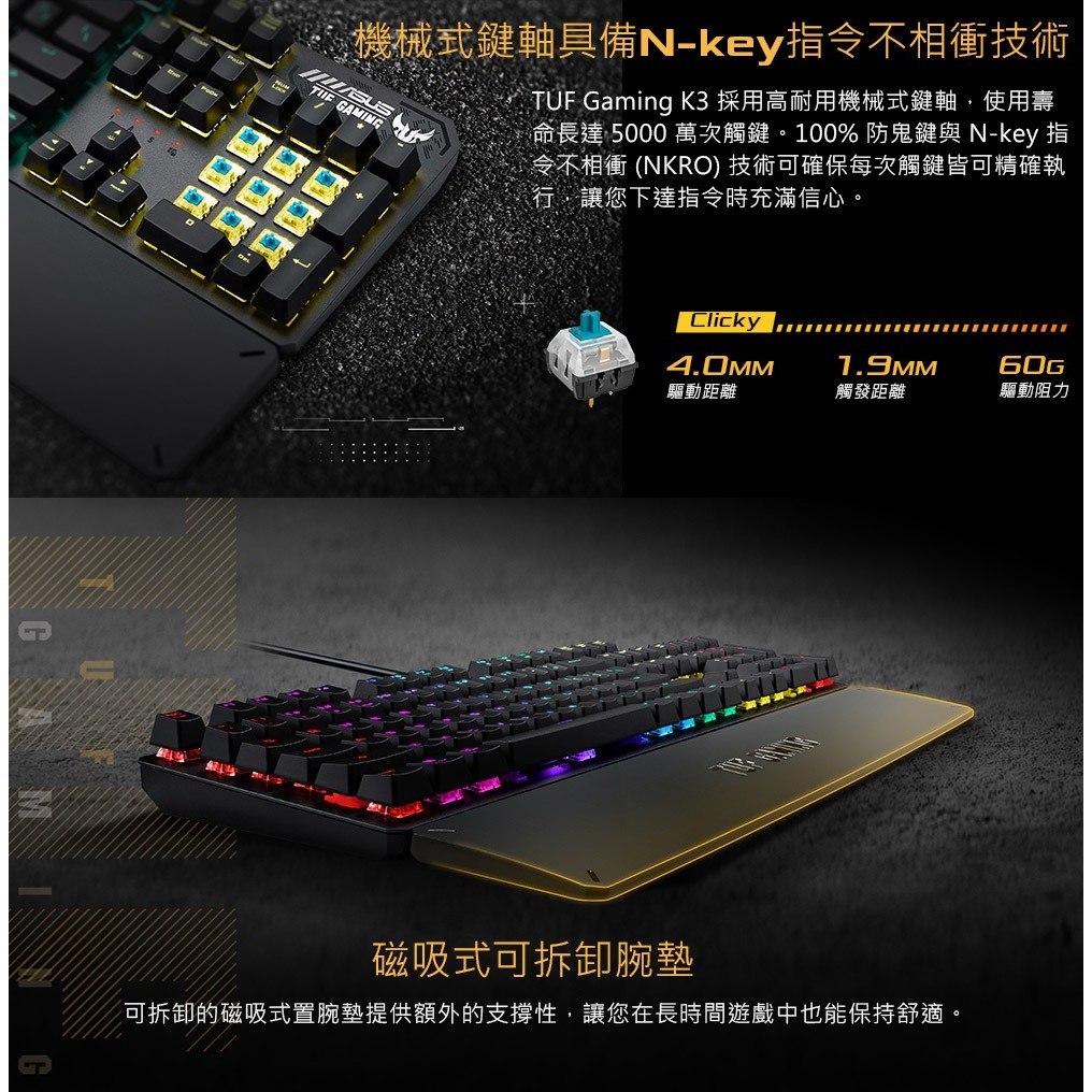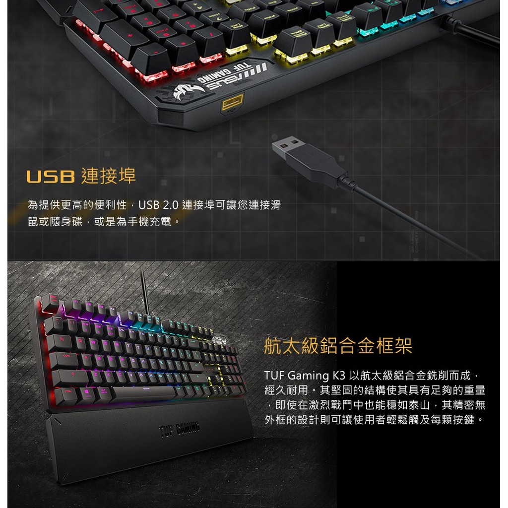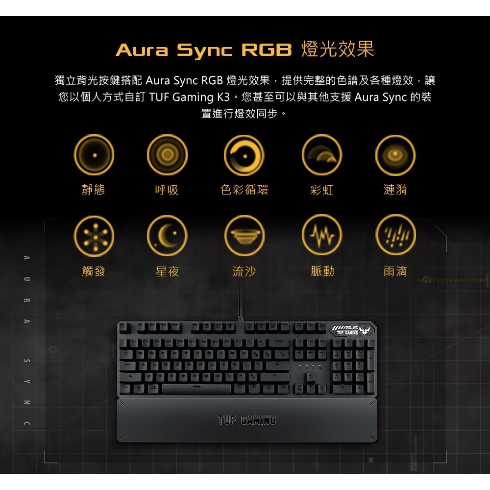 ASUS 華碩 TUF GAMING K3 有線鍵盤 電競鍵盤 Aura Sync RGB LED 機械鍵盤
