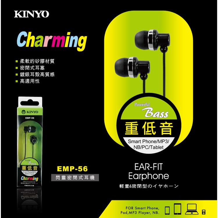 KINYO EMP-56 有線耳機 耳塞式耳機 黑色