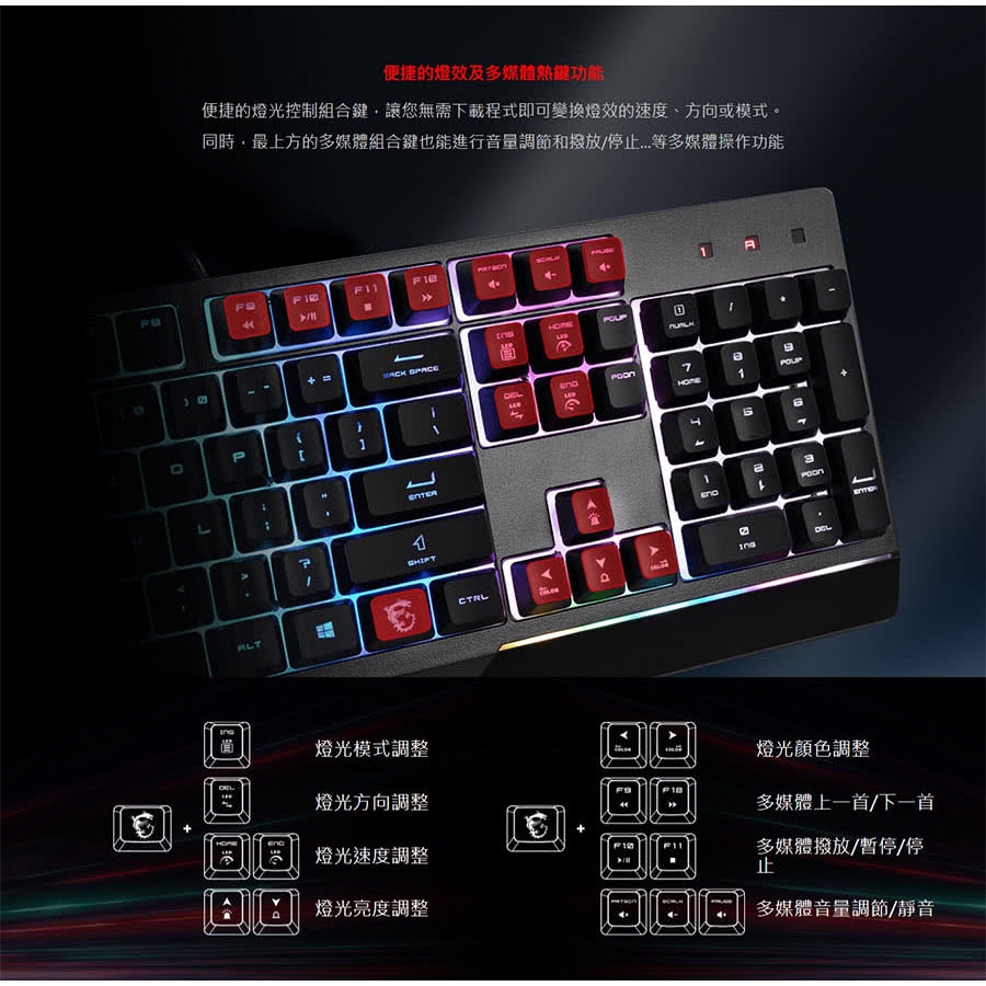 MSI 微星 Vigor GK30 COMBO TC 有線 電競鍵鼠組 防潑水