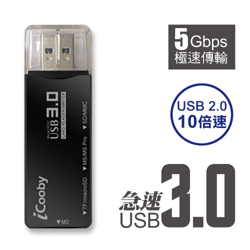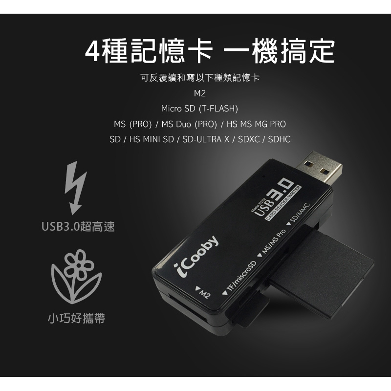 iCooby R202 記憶卡讀卡機 3槽 USB3.0 SD卡 黑色 白色 順發