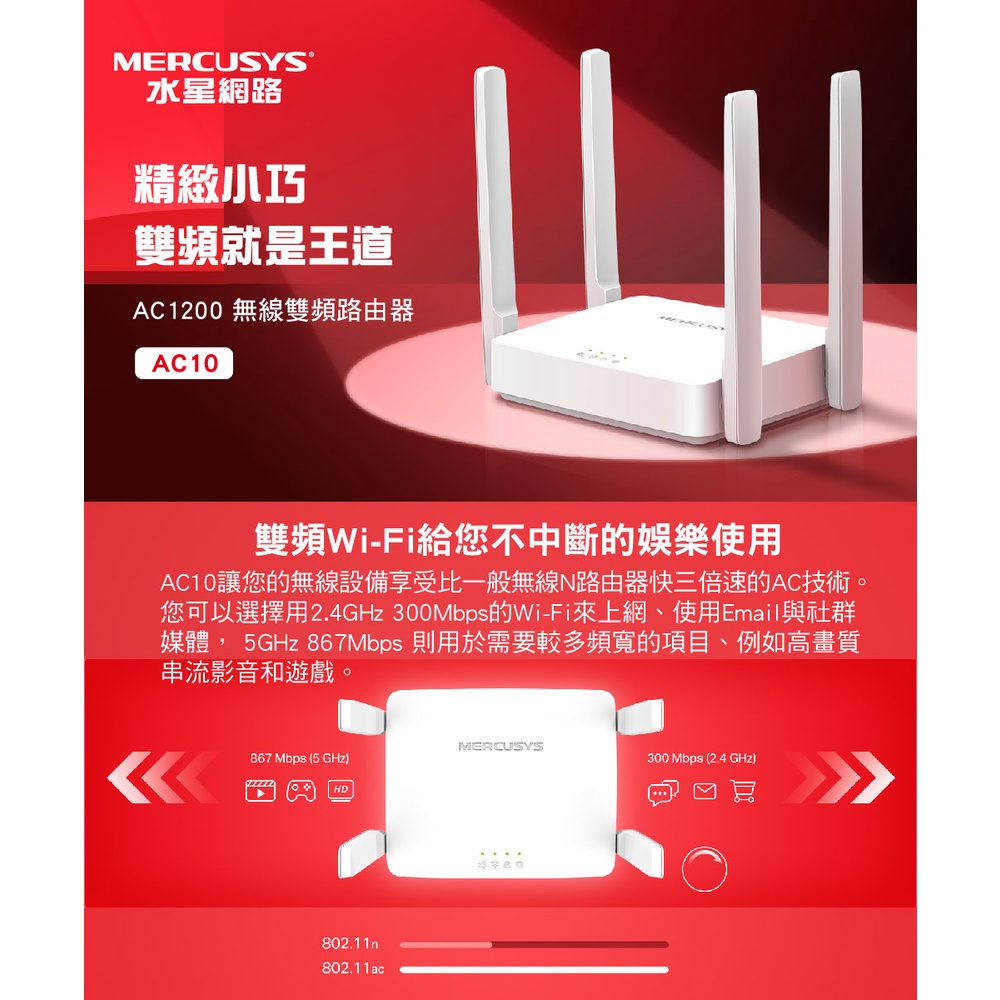 Mercusys 水星 AC10 WiFi 無線路由器 分享器 AC1200 雙頻 IPv6