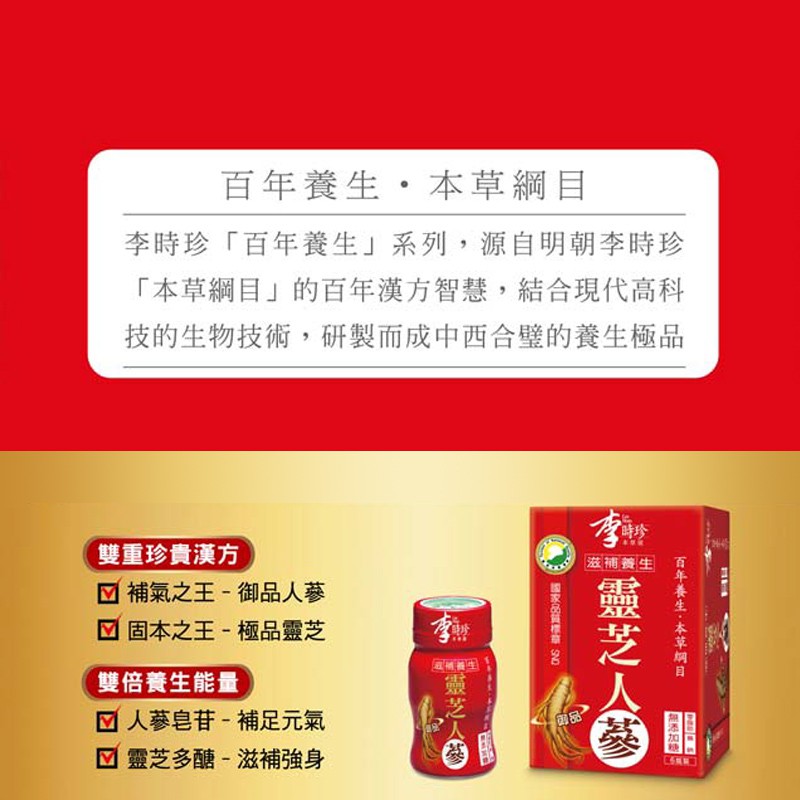 李時珍 靈芝菌絲體御品人蔘精華飲 12瓶/組 蝦皮直送