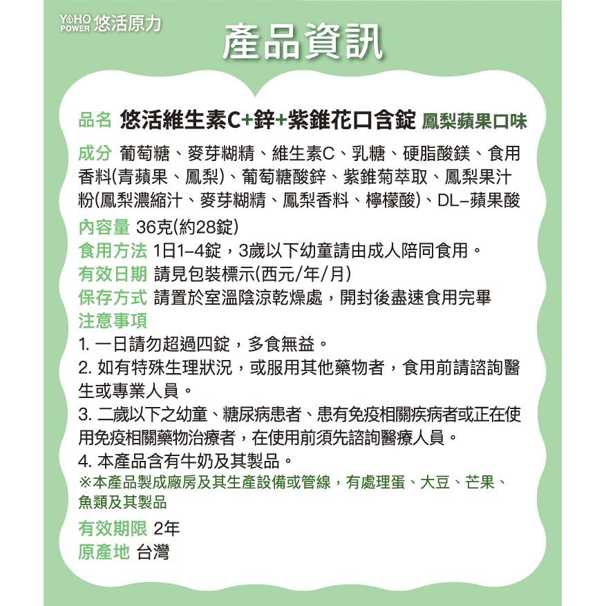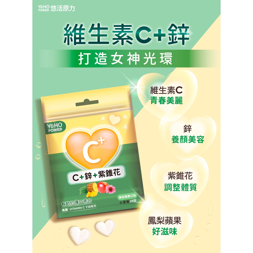 悠活原力 維生素C+鋅+紫錐花口含錠 鳳梨蘋果口味 28錠/包 蝦皮直送 現貨