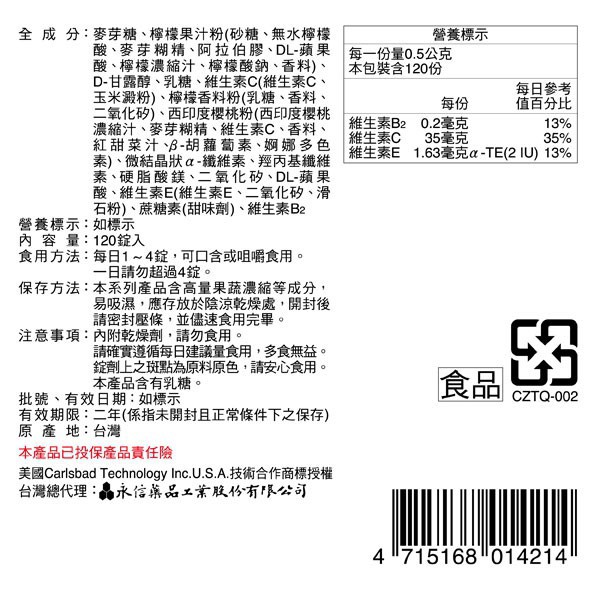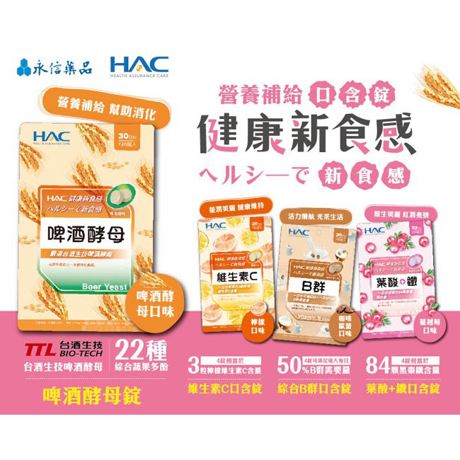 永信HAC 維生素C口含錠 檸檬口味 120錠/包 維他命C 營養補給 新食感 低卡點心 奶素可食 現貨 蝦皮直送