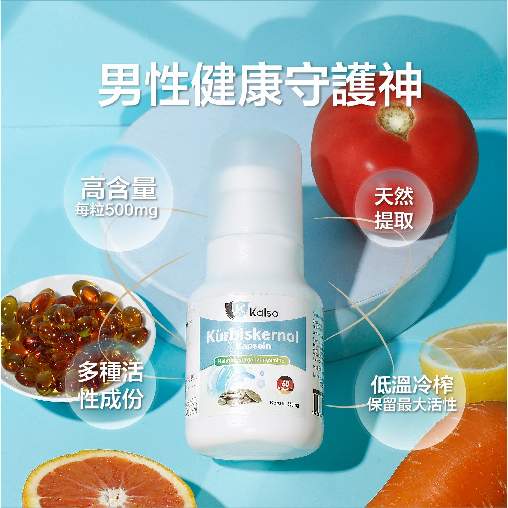 科德司Kalso 南瓜籽油軟膠囊 60粒/瓶 男性守護神 增強體力 保持精神 天然原料精選 德國進口 現貨 蝦皮直送