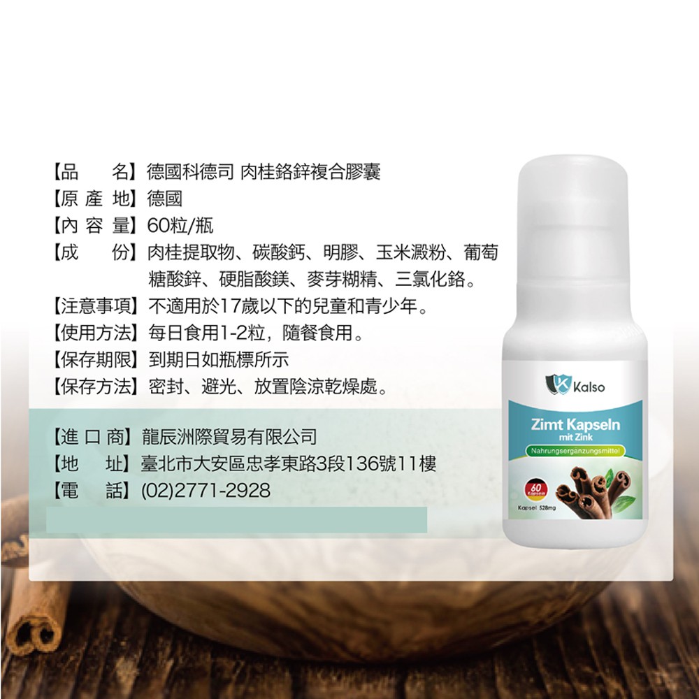科德司Kalso 肉桂鉻鋅複合膠囊 60粒/瓶 促進新陳代謝 調節生理機能 精神旺盛 德國進口 現貨 蝦皮直送
