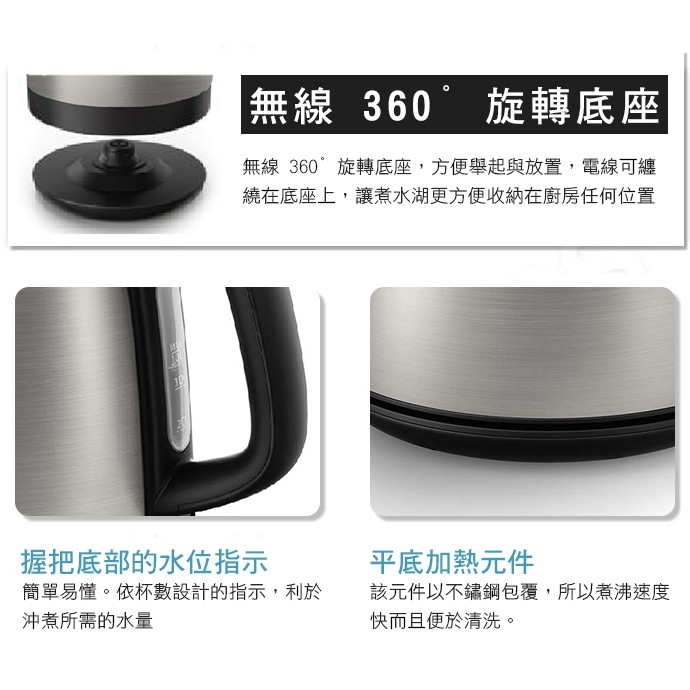 PHILIPS飛利浦 1L不鏽鋼煮水壺/快煮壺 HD9348 免運 現貨 廠商直送