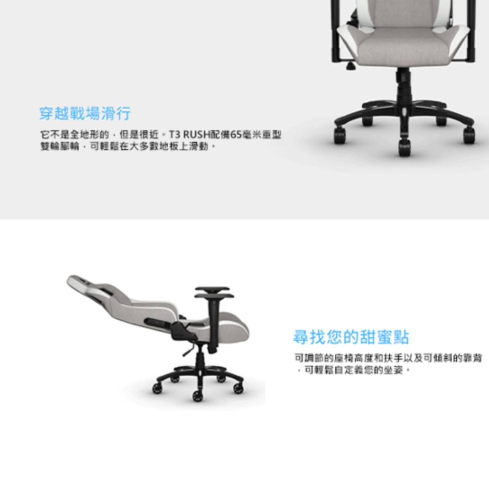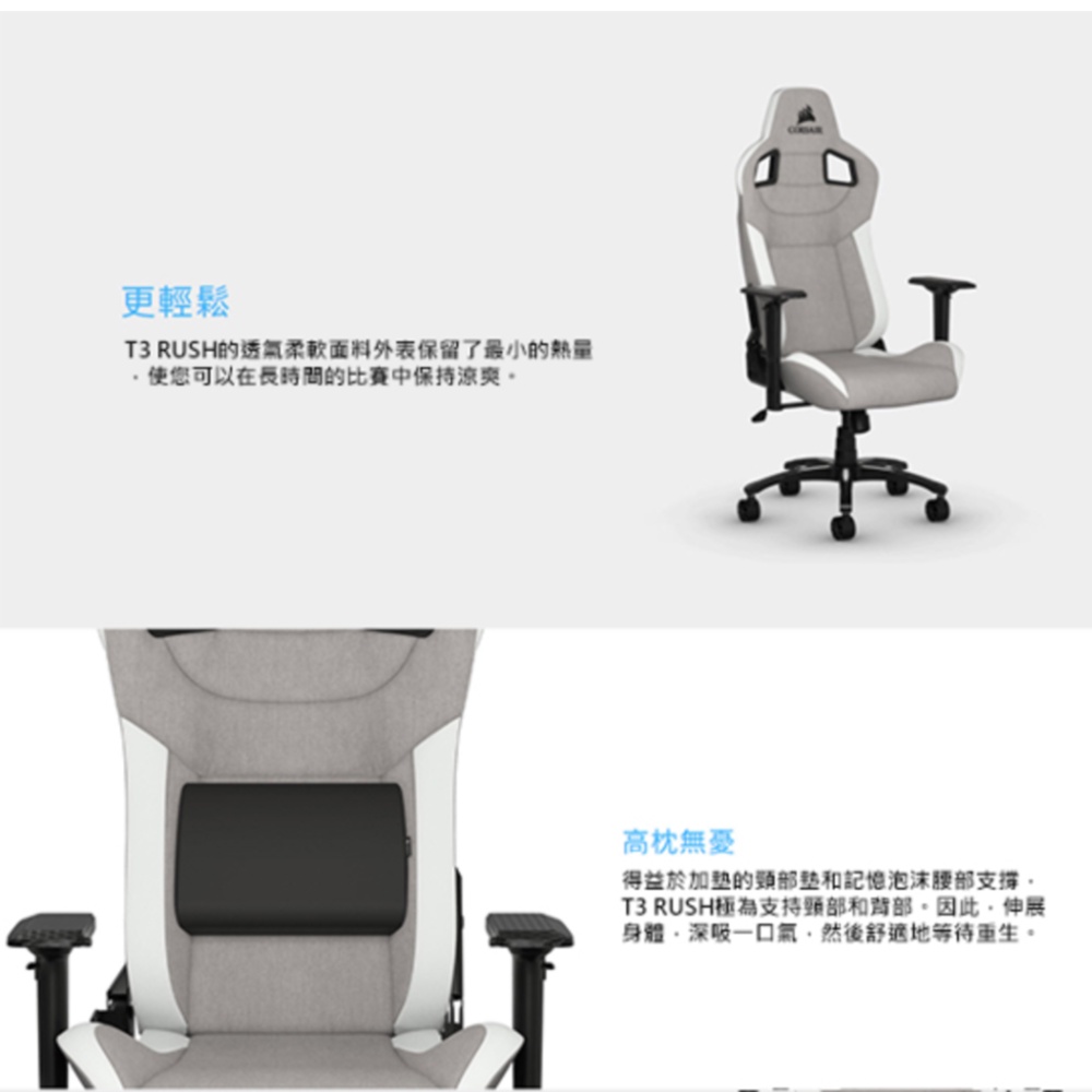 Corsair 海盜船 T3 RUSH 人體工學高背電競椅 黑色/灰黑/灰白 (不含安裝) 現貨 廠商直送