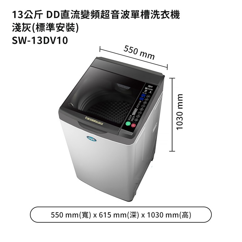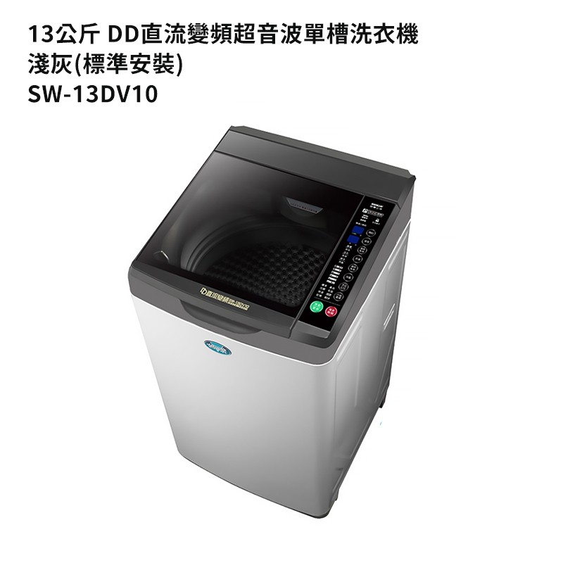 SANLUX台灣三洋SW-13DV10 13公斤DD直流變頻超音波單槽洗衣機-淺灰(標準安裝) 大型配送