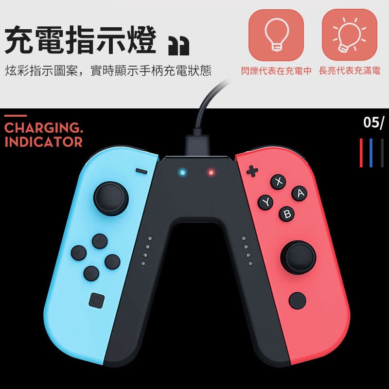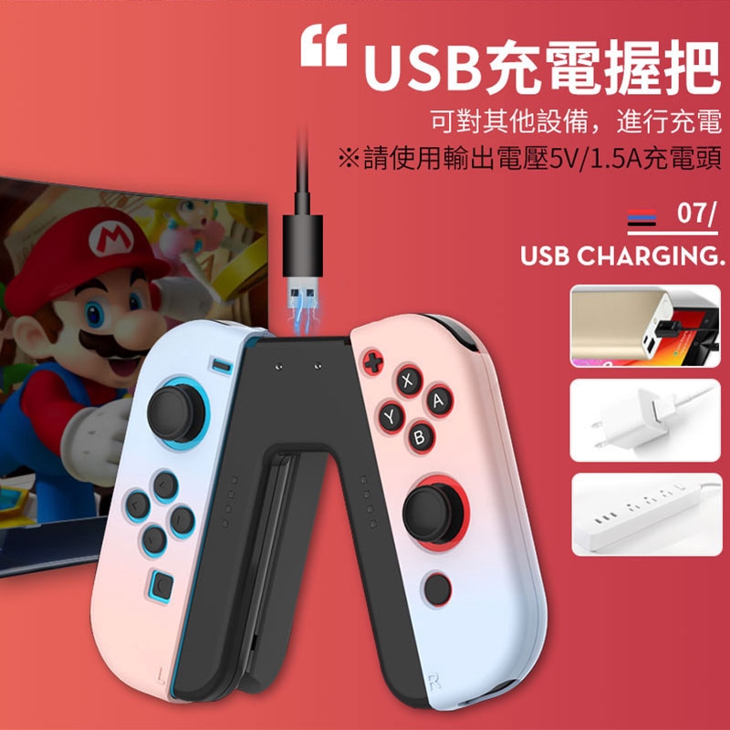 鴻嘉源 SWITCH充電握把 邊充邊玩 USB充電手把 人體工學 JOYCON 充電底座 現貨 廠商直送