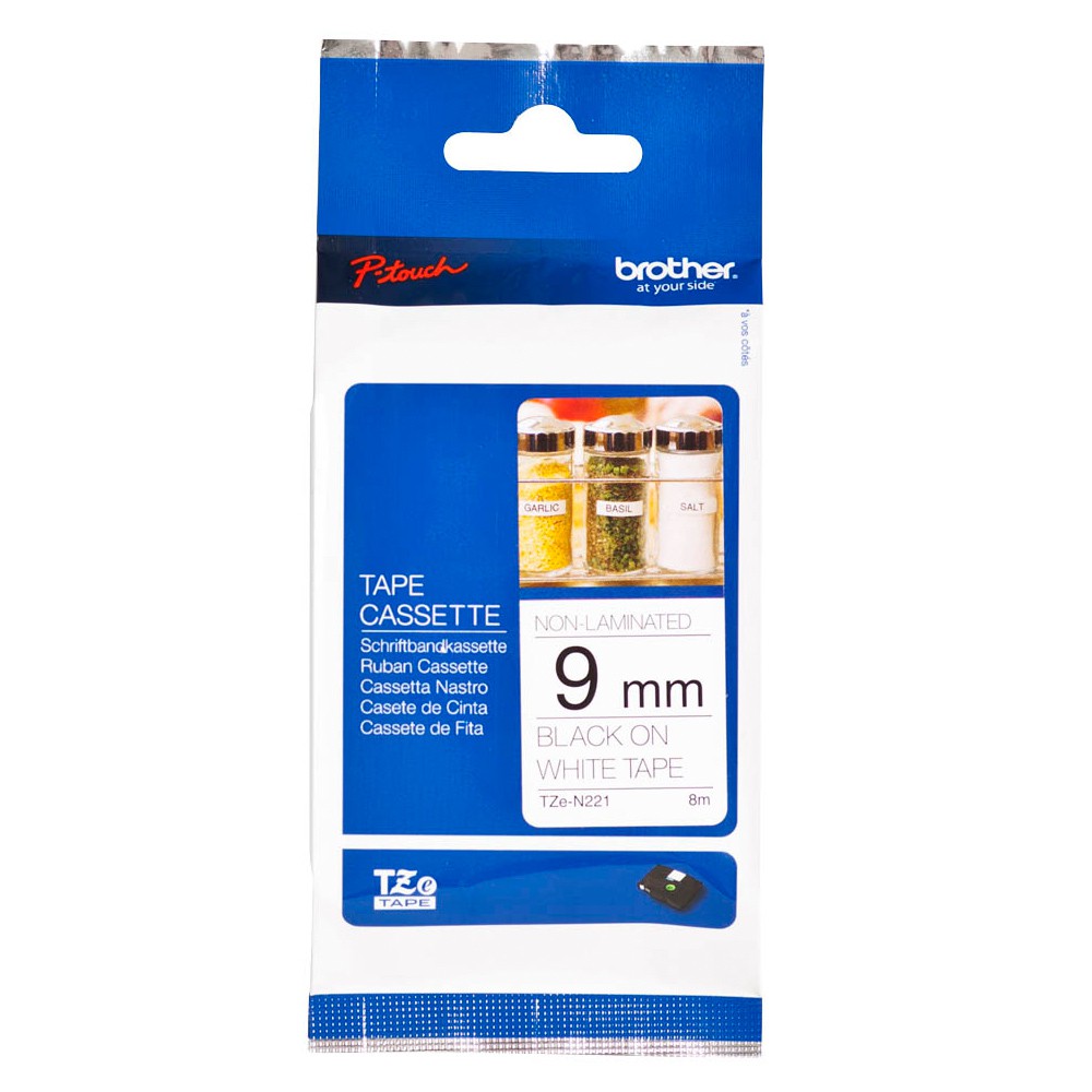 Brother TZe-N221 一般標籤帶 無護貝 (9mm 白底黑字) 廠商直送