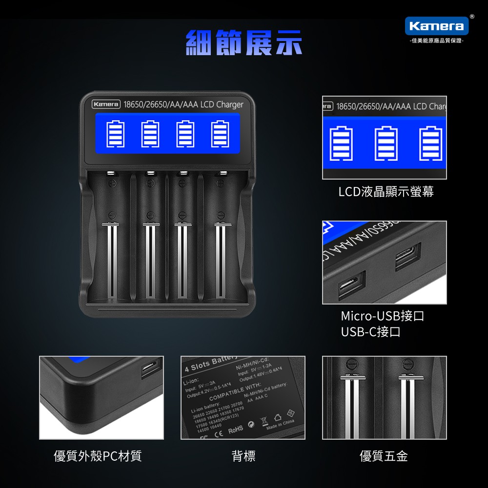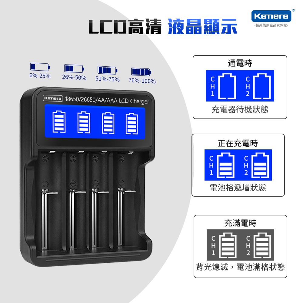 Kamera 18650/26650 液晶四槽充電器 (L465) 現貨 廠商直送