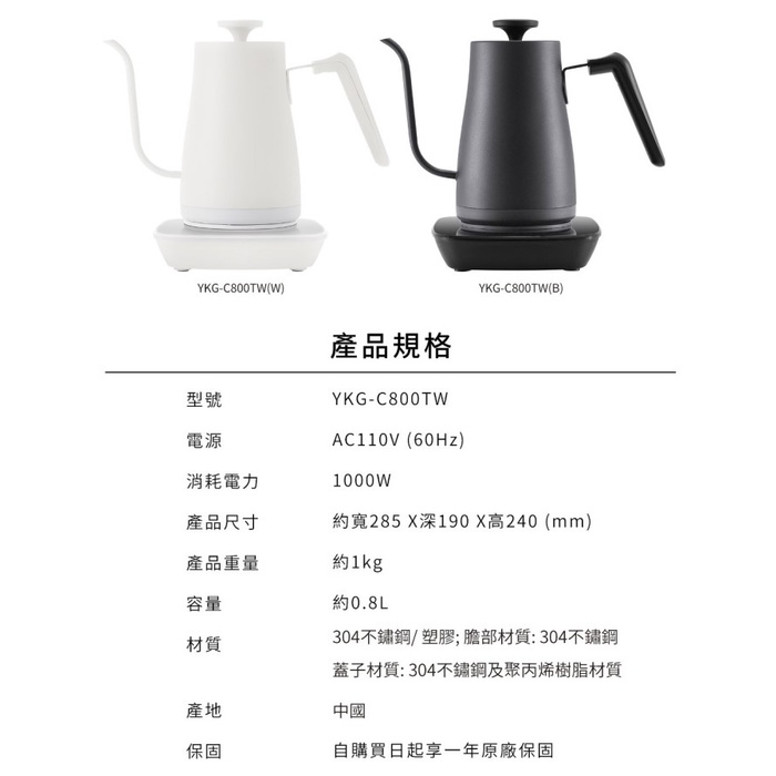 日本山善 YAMAZEN YKG-C800TW 溫控電熱壺 現貨 廠商直送