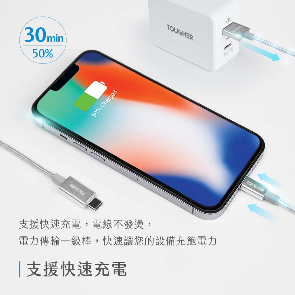 TOUGHER USB-A to Type C 1.2m金屬編織傳輸線 現貨 廠商直送