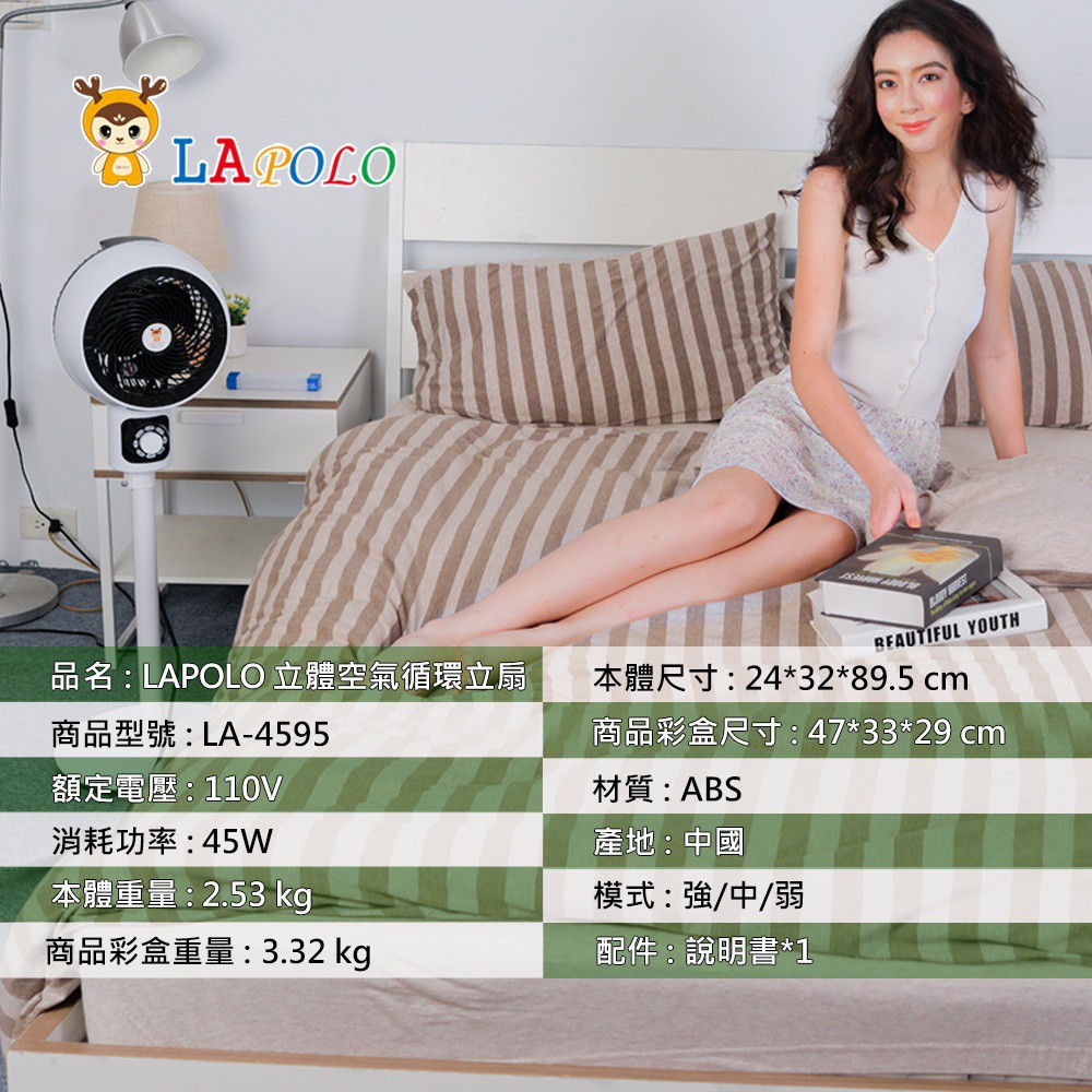 LAPOLO 立體空氣循環立扇 LA-4595 現貨 廠商直送