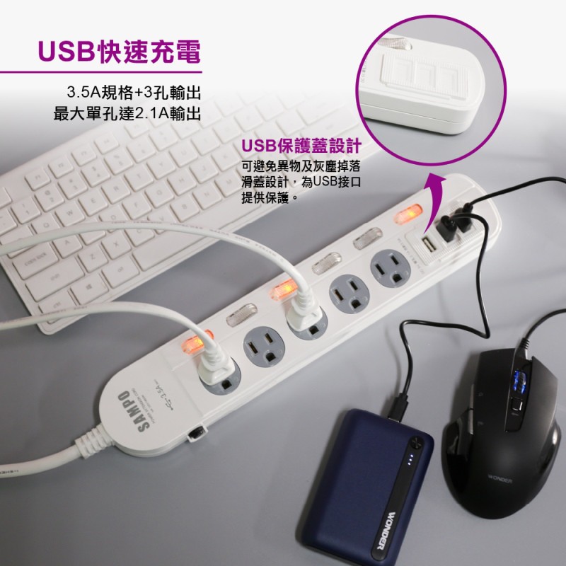 聲寶 四開三插 六開五插 USB延長線 防雷擊 安全延長線 3.5A 台灣製造 最新BSMI安規 廠商直送