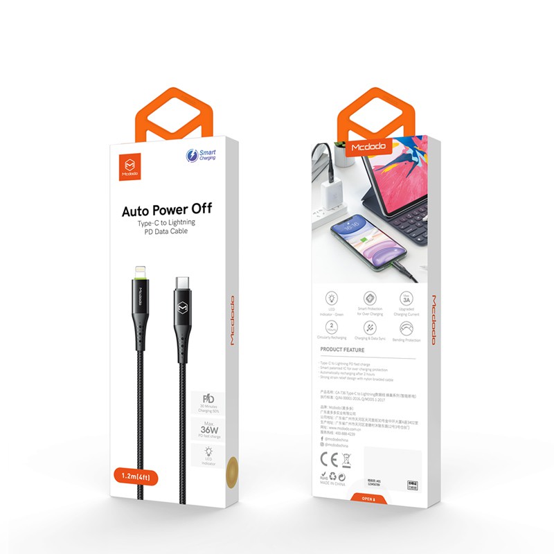 Mcdodo PD快充智能斷電充電線TypeC to lightning 麥多多 充電線iphone PD線 廠商直送