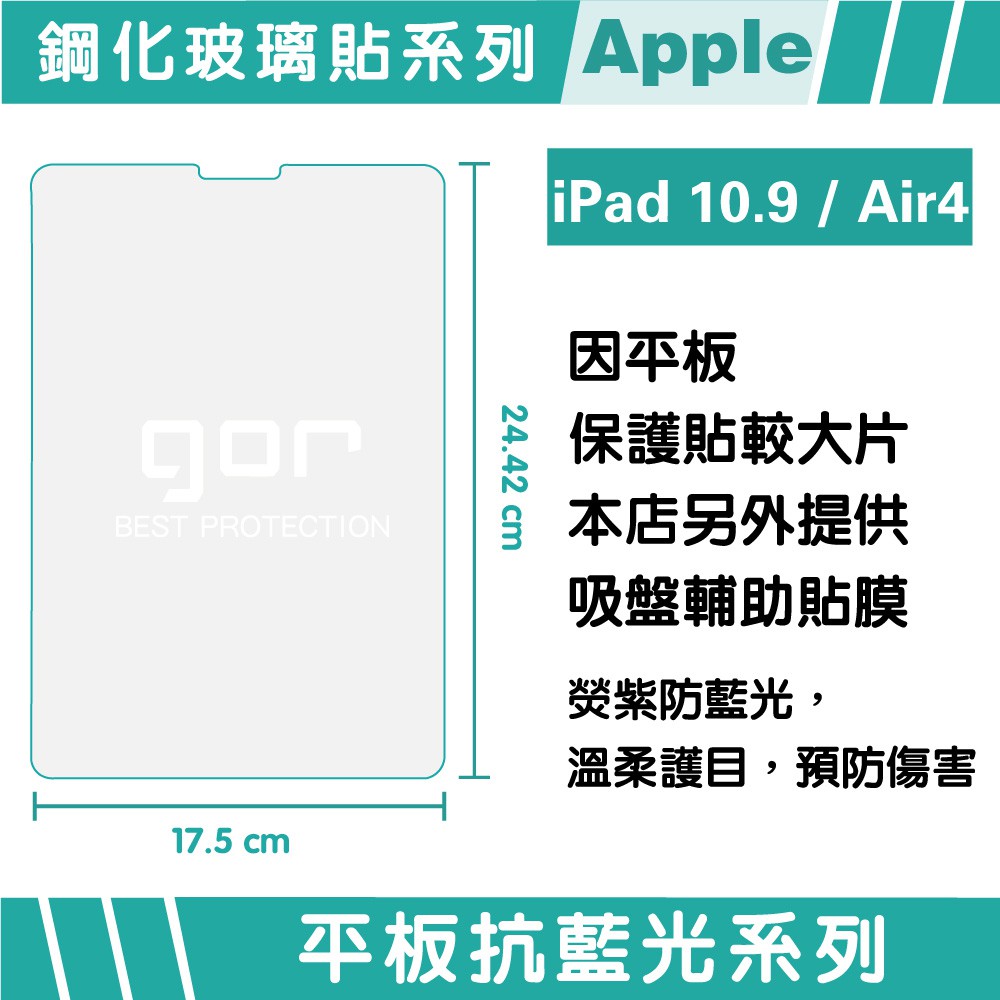 GOR保護貼 iPad Air4 / Air5 10.9吋 防藍光抗藍光 9H全透明鋼化玻璃平板保護貼廠商直送