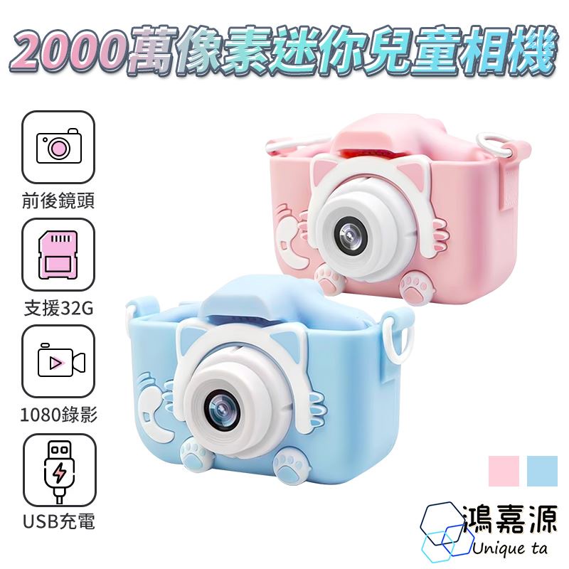 鴻嘉源 雙鏡頭迷你造型兒童相機 2000萬像素 雙向拍照錄影 防摔保護套 廠商直送