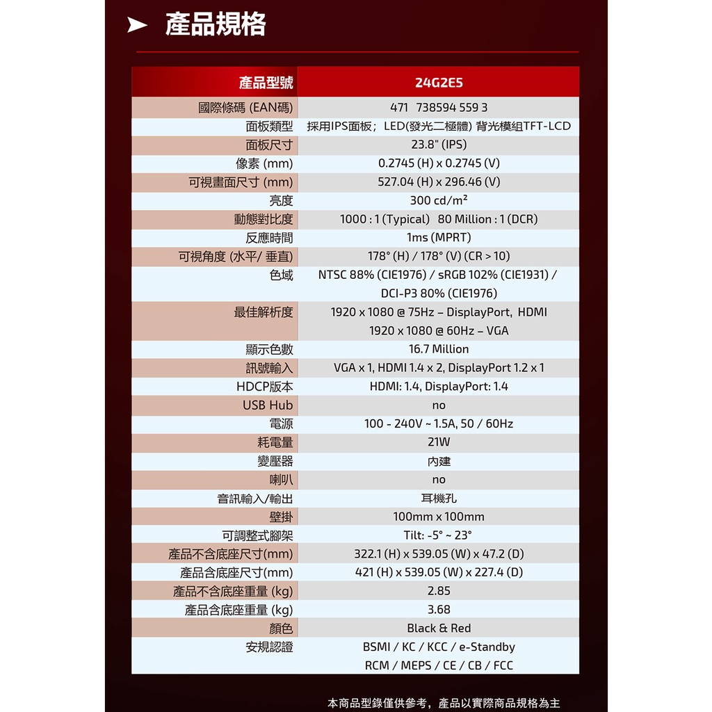AOC 24G2E5 24型 IPS HDR 電競螢幕| 現貨 廠商直送