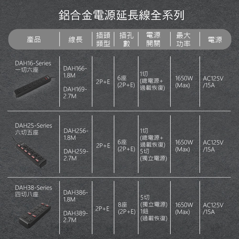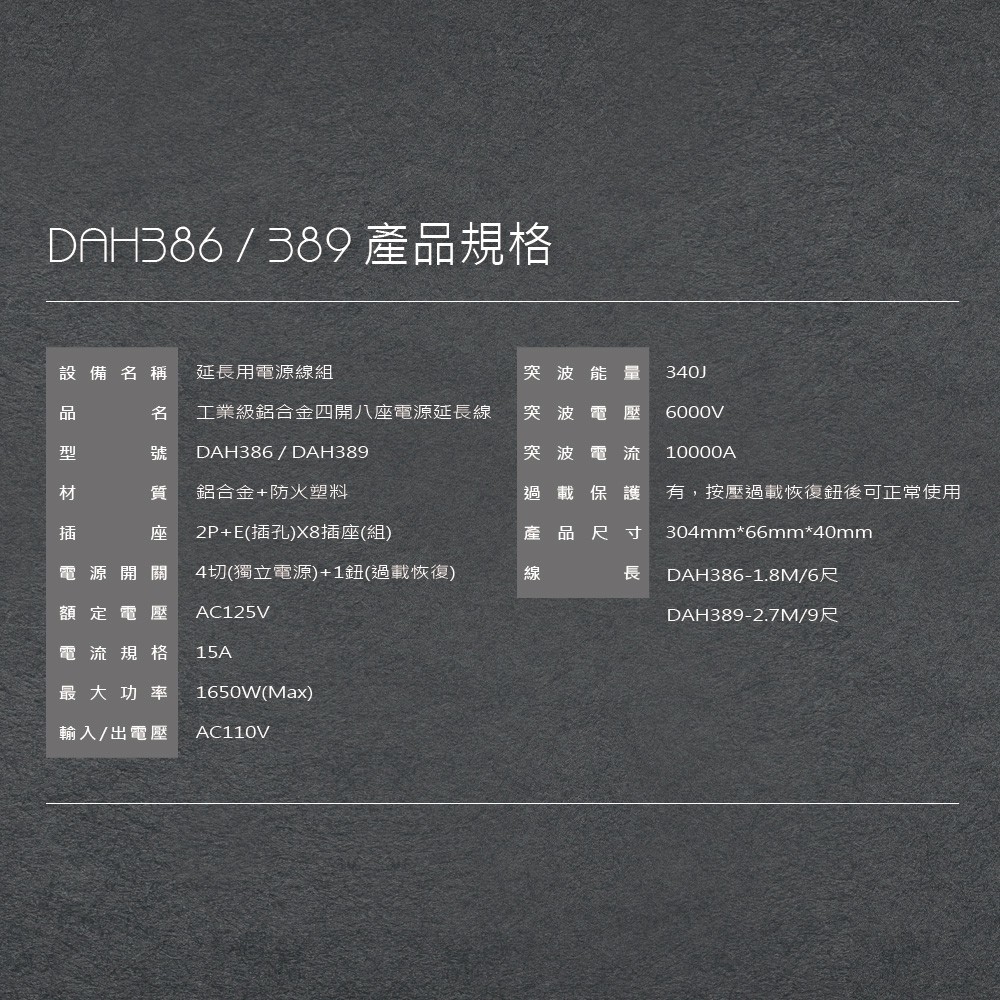 DIKE DAH389 工業級鋁合金四開八座電源延長線 充電線 電源線 排插 2.7M 現貨 蝦皮直送