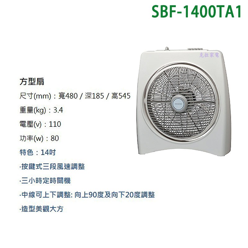 SANLUX台灣三洋 14吋電風扇(方型扇)SBF-1400TA1 現貨 廠商直送