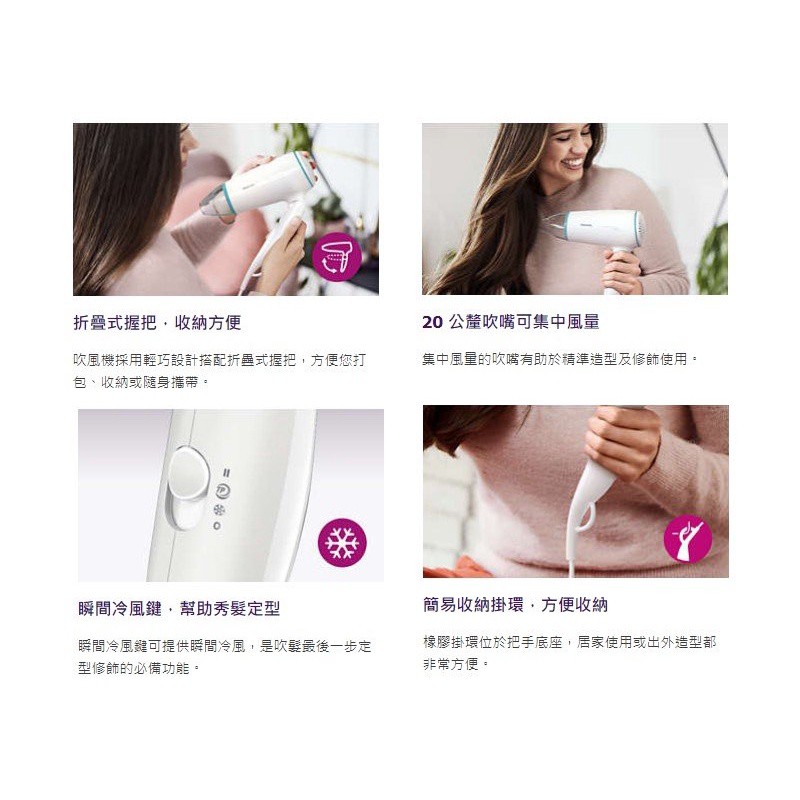 【Philips 飛利浦】旅行用輕巧折疊超靜音吹風機 BHD006(國際電壓) 現貨 廠商直送