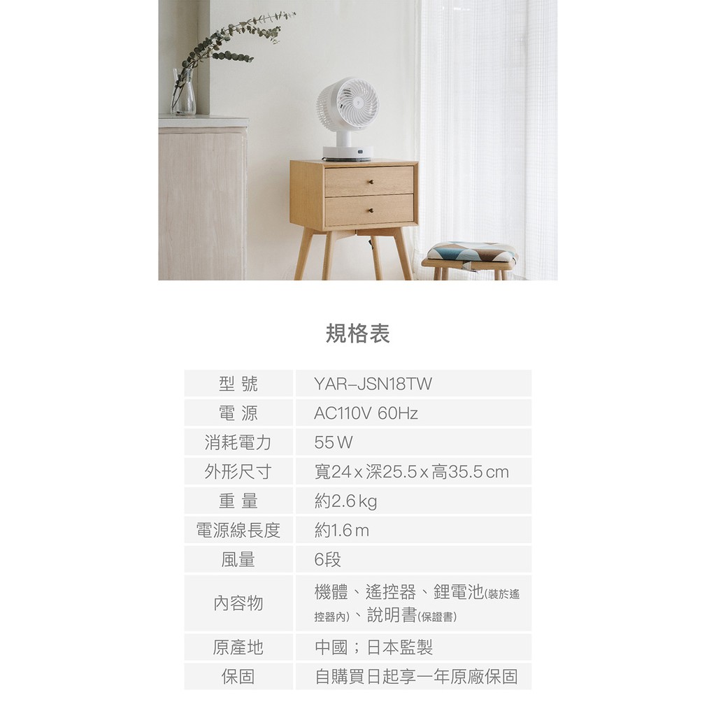 YAMAZEN山善 7吋自動感溫空氣循環扇 YAR-JSN18TW 現貨 廠商直送