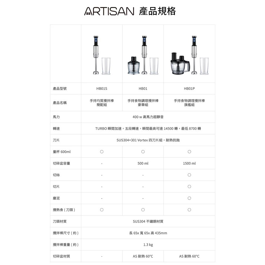 ARTISAN奧堤森 五段速手持食物調理攪拌棒/豪華組 HB01 現貨 廠商直送
