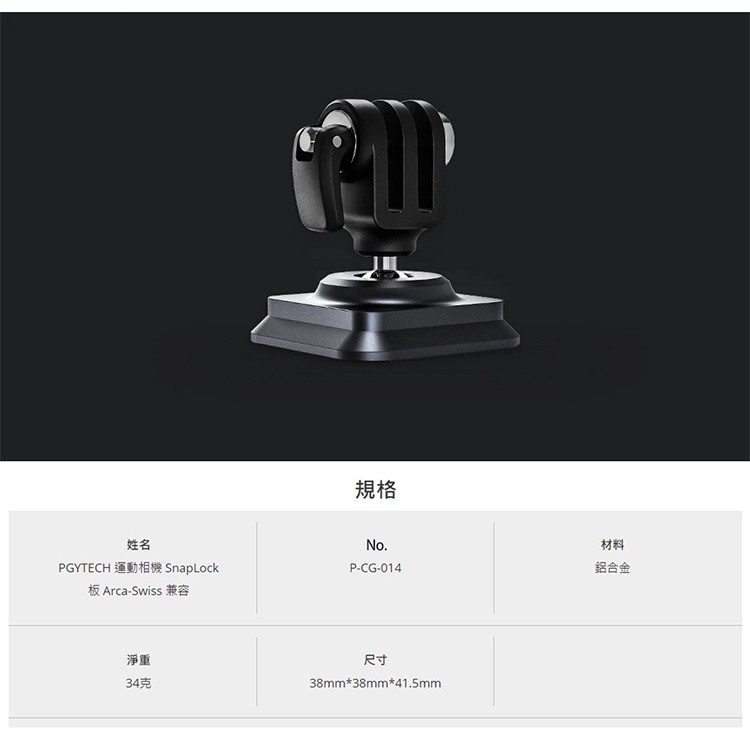 PGYTECH 運動相機 SnapLock 快拆板 P-CG-014 公司貨 廠商直送
