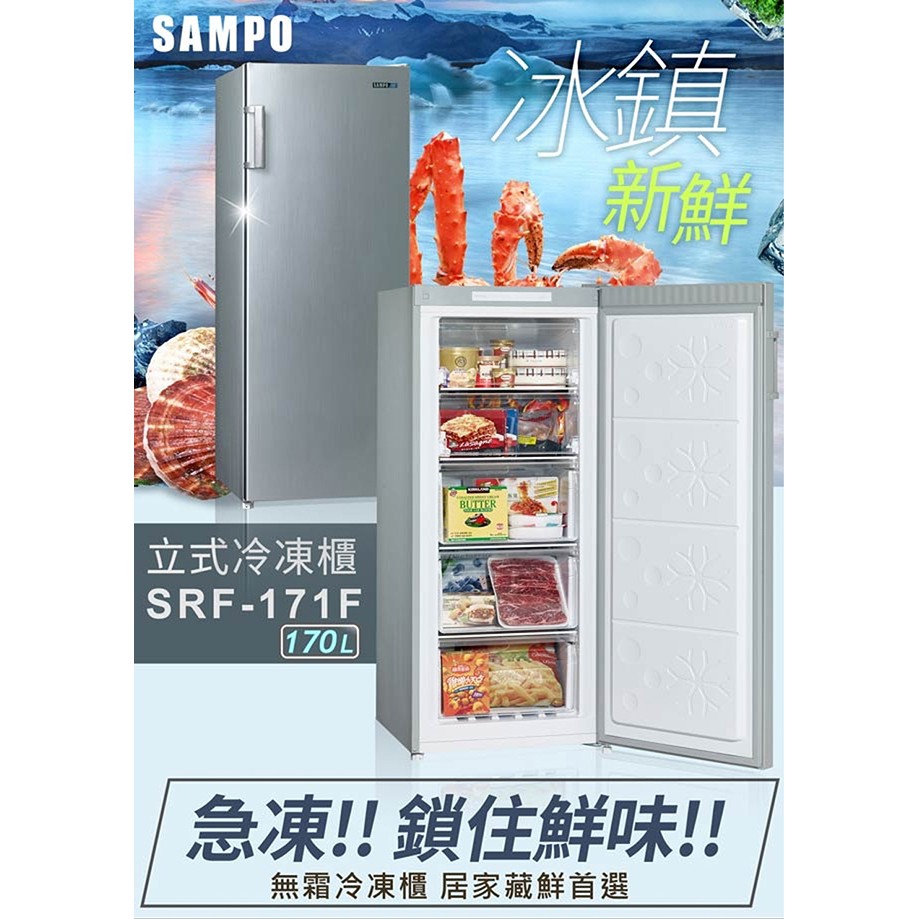 SAMPO 聲寶- 170L單門直立式無霜定頻冷凍櫃 SRF-171F 含基本安裝 大型配送