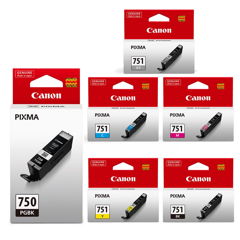 Canon PGI-750BK+CLI-751BK/C/M/Y/GY 原廠墨水匣組合(2黑4彩) 廠商直送