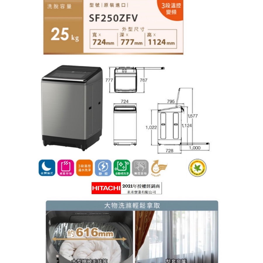 HITACHI日立 25公斤溫控變頻(與SF250ZFV同款)洗衣機 SF250ZFVSS 大型配送