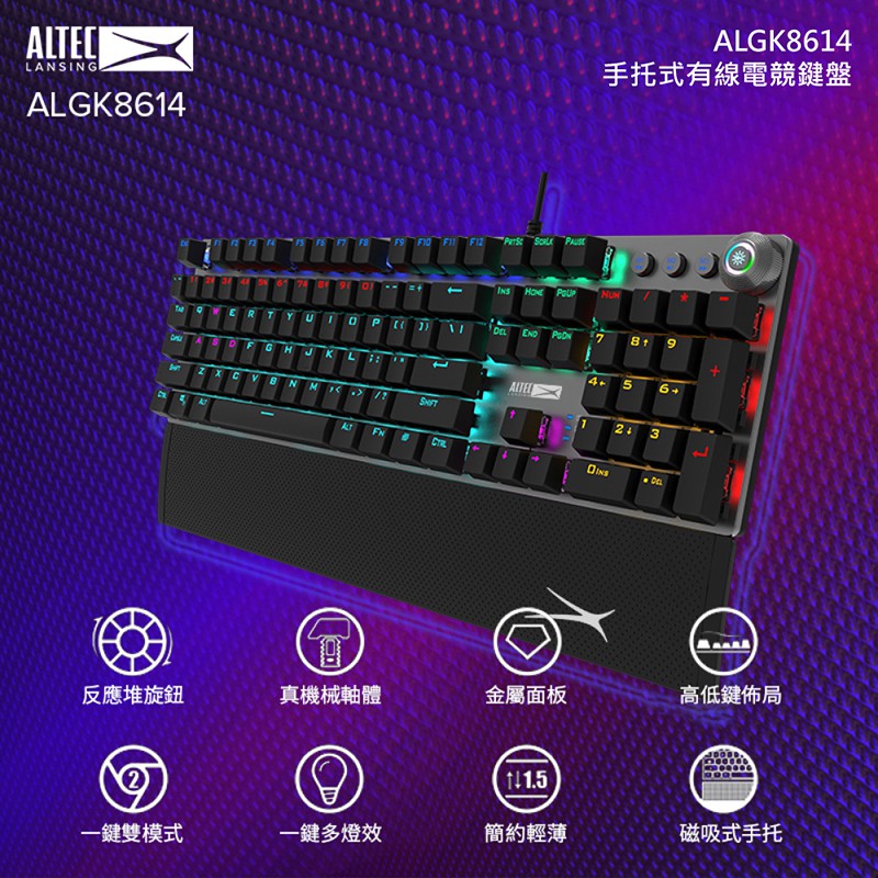 ALTEC LANSING 手托式有線電競鍵盤 黑 ALGK8614 黑 現貨 廠商直送