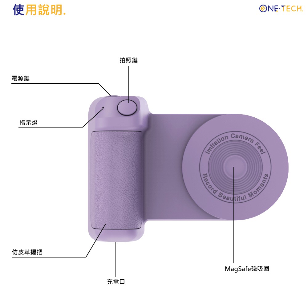 ONE-TECH. 磁吸手機支架自拍器 MagSafe 磁吸藍牙自拍 相機手柄 手機架 自拍神器 掌握街拍 蝦皮直送