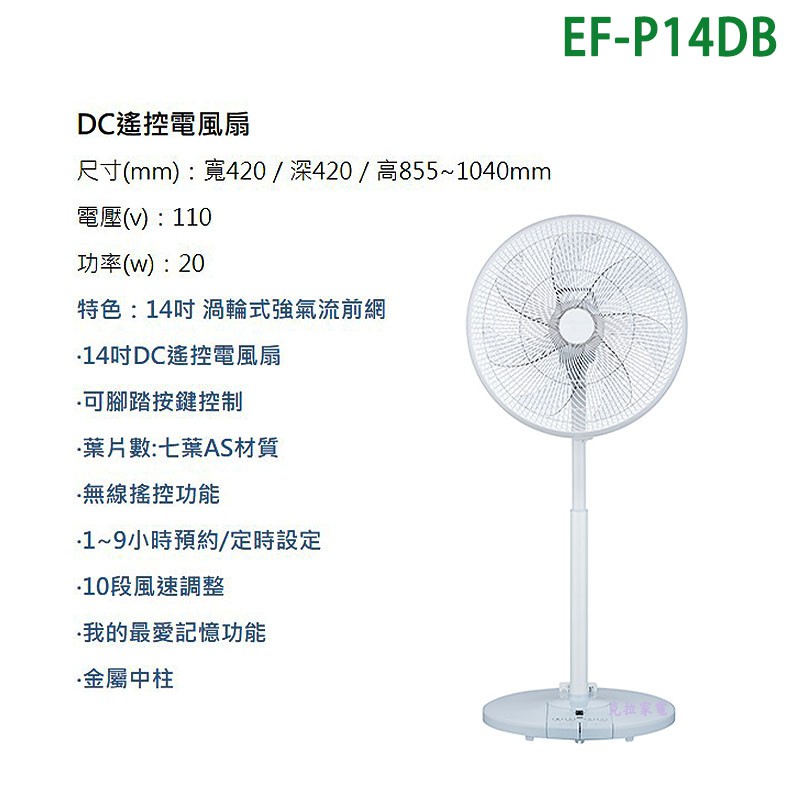 SANLUX台灣三洋 14吋DC遙控電風扇(立扇)EF-P14DB 現貨 廠商直送