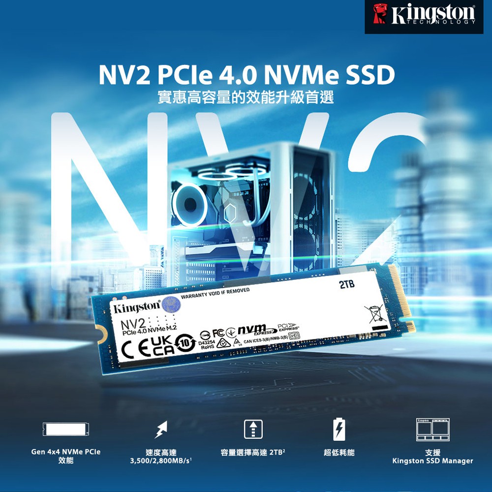 金士頓 Kingston NV2 500GB NVMe PCIe 4.0 SSD 固態硬碟