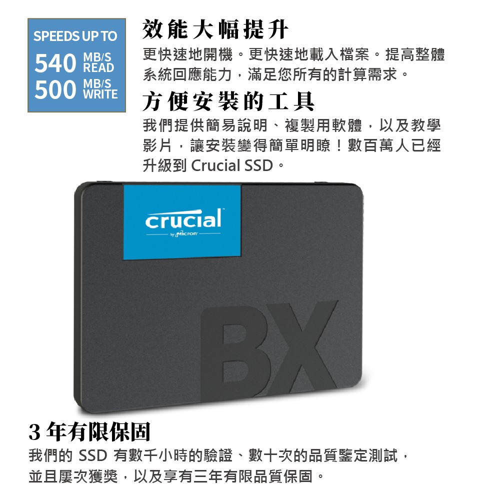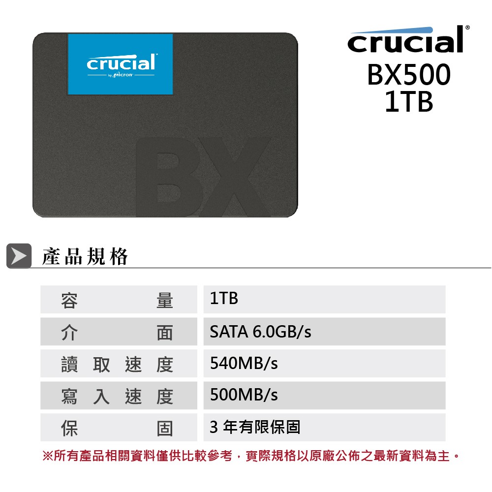 美光Micron Crucial BX500 1TB SATAⅢ 固態硬碟 廠商直送