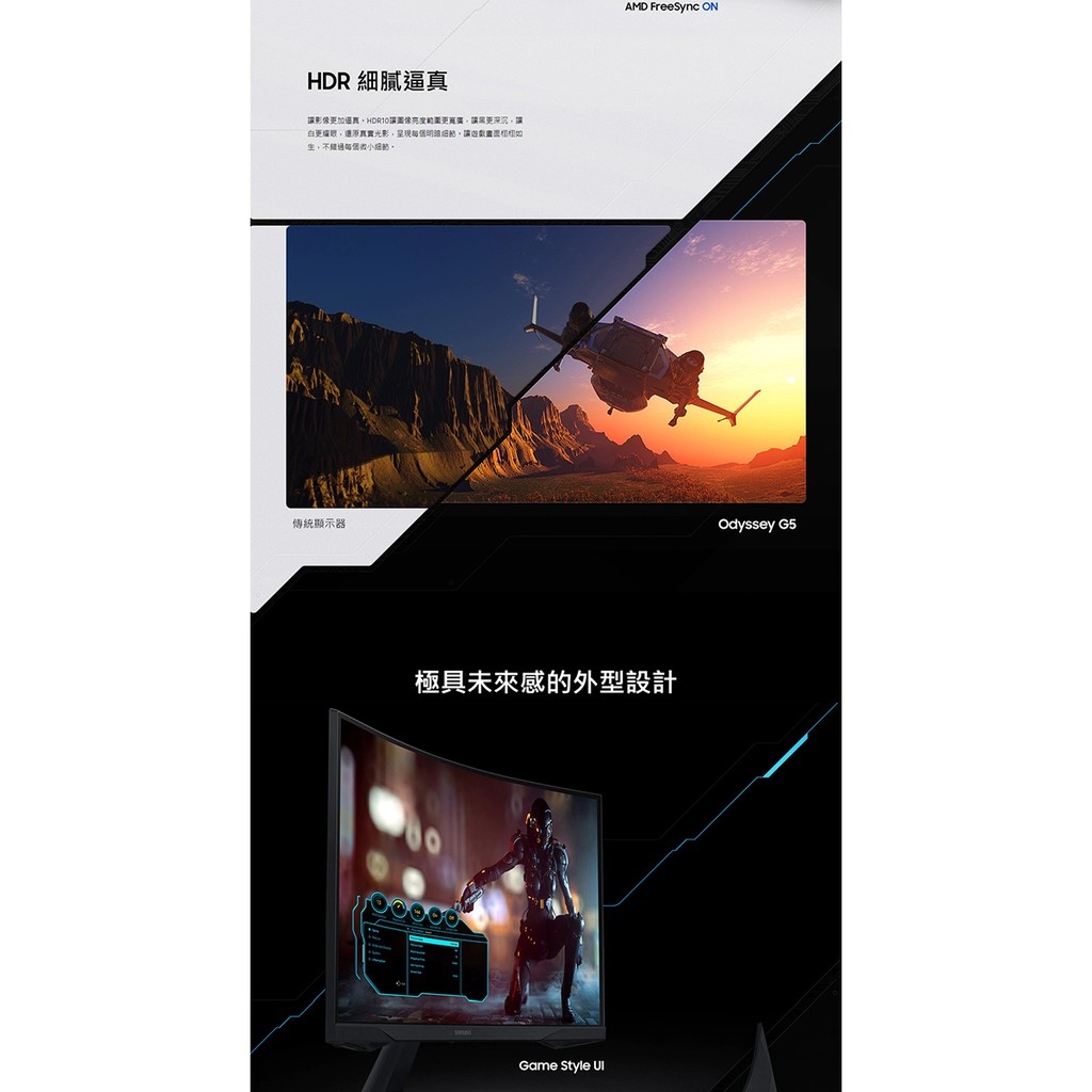【SAMSUNG 三星】27吋 Odyssey G5 C27G55 1000R 曲面電競螢幕 現貨 廠商直送